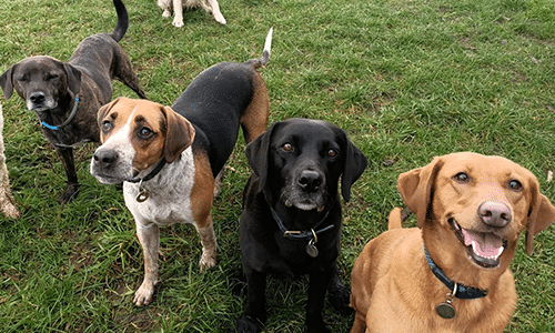 We have our own private secure, land away from the public that we use for our regular morning dog walking service. We guarantee that your dog will be safe and enjoy diverse walks with other dogs.